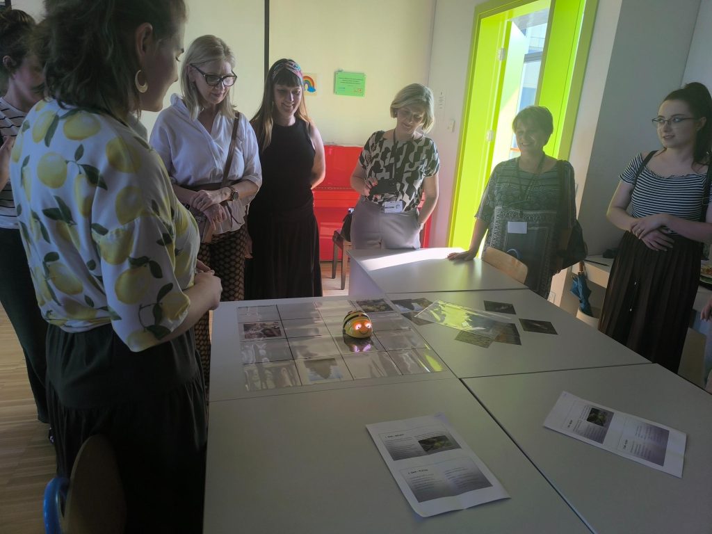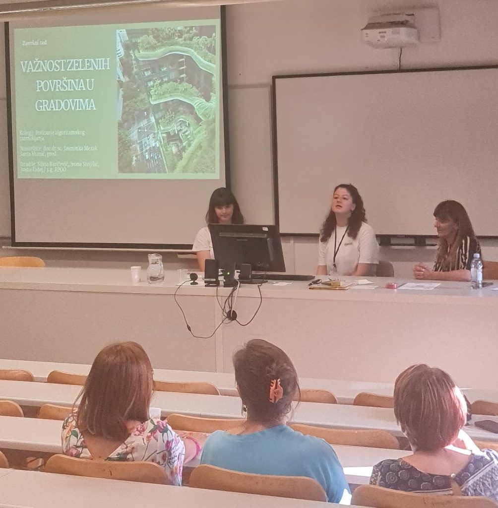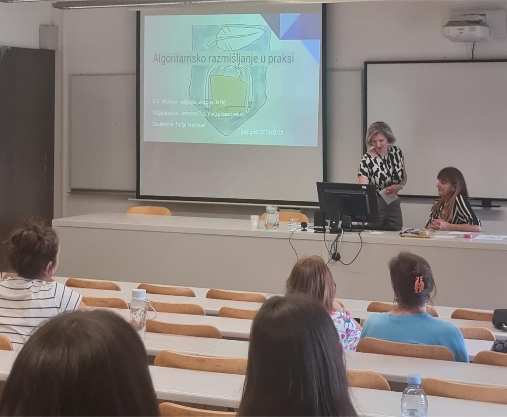 Nakon toga, studentice 3. godine prijediplomskog studija RPOO Silvia Baričević, Ivona Stojšić i Tea Sedić prikazale su svoje radove izrađene u okviru pilot kolegija da bi na kraju sudionici praktično isprobali rad s robotima i igru koja je osmišljena i izrađena kao jedan od rezultata projekta.