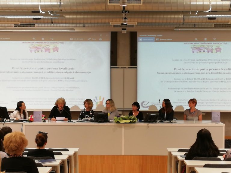 Dana 16. travnja 2018. godine, na Učiteljskom fakultetu Sveučilišta u Rijeci, a u organizaciji Centra za istraživanje djetinjstva, održana je promocija publikacije Prvi k…